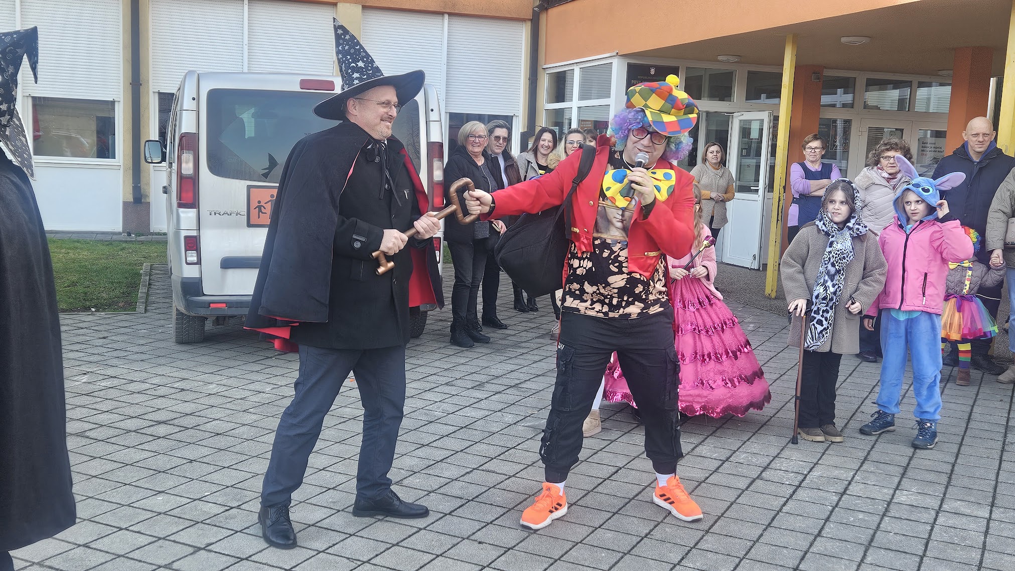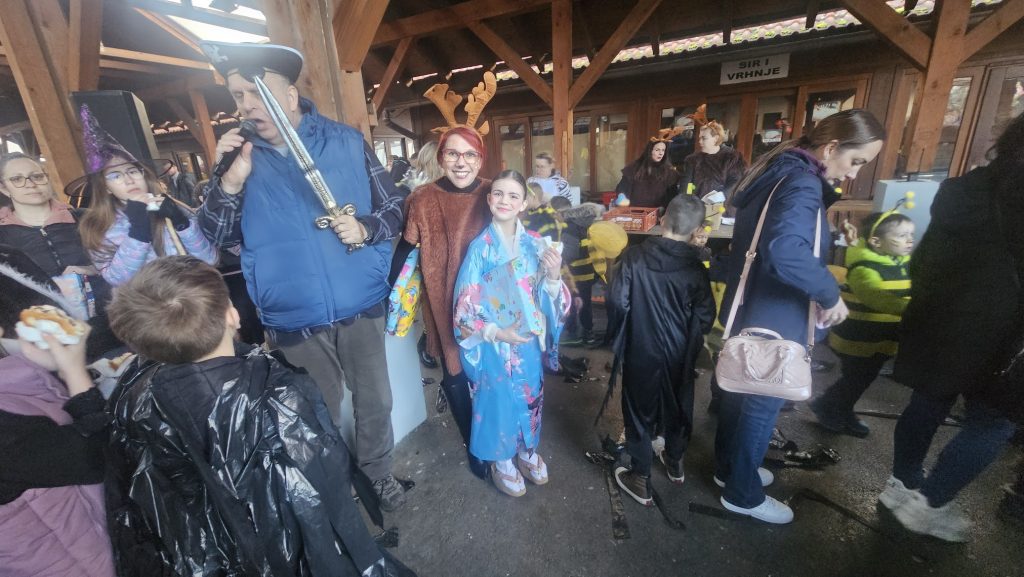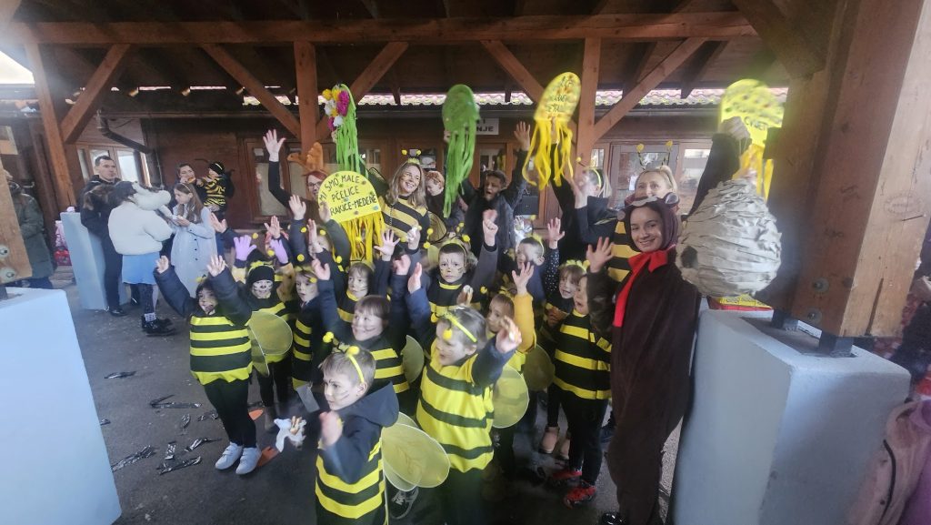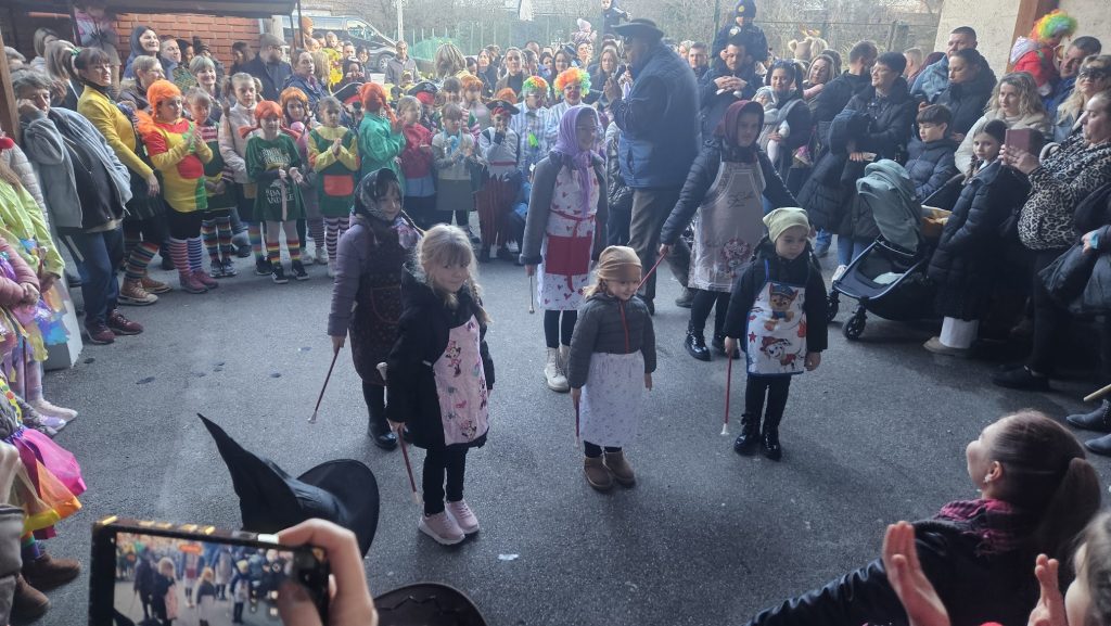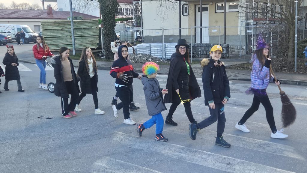 Maskirna kolona više stotina najmlađih krenula je od Prve osnovne škole Bolničkom i središtem grada do gradske Tržnice gdje su uz animaciju Mire pokazali svoja umijeća i gdje su proglašene najbolje skupne i pojedinačne maske uz čašćenje krafnama. Najbolja skupna maska su bile Pčelice a pojedinačne Gejša, Krinolina i Policajac.