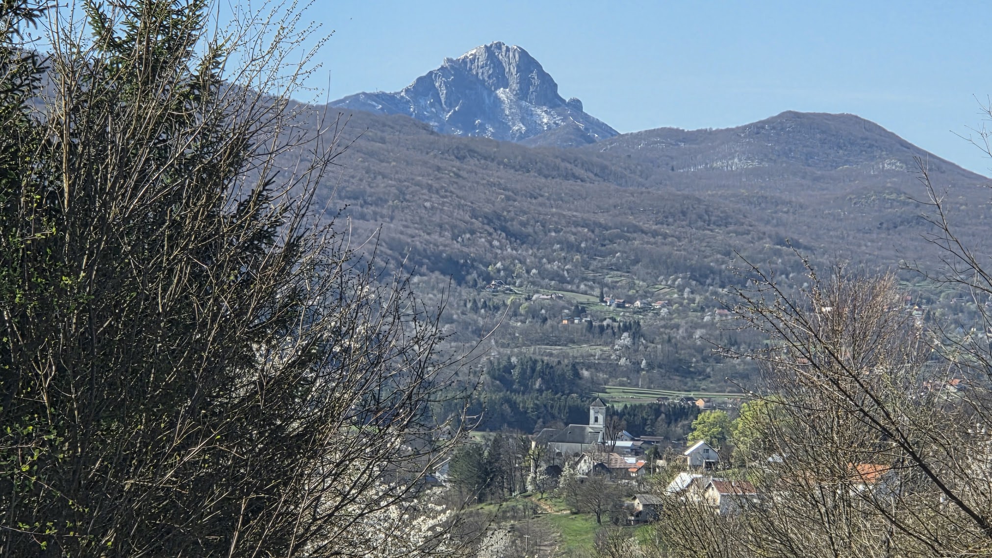 Zagorje Ogulinsko snimljeno s juga pruža interesantnu vizuru sa snježnim Klekom u pozadini. Priroda se polako budi iz zimskog sna kojeg je produžio prošlotjedni visoki snježni pokrivač.