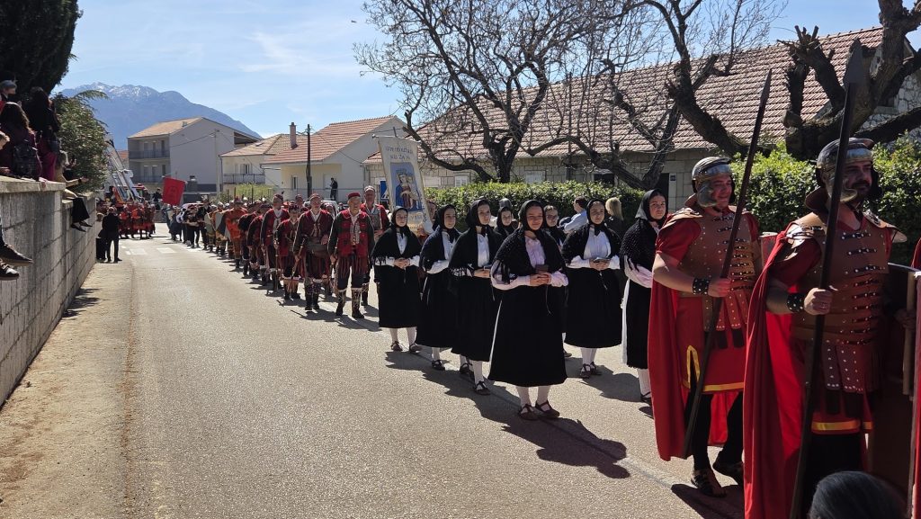 Nakon svete mise uslijedilo snimanje 997. milenijske fotografije akademskog snimatelja Šime Strikomana, inače glavnog organizatora Hrvatskog festivala žudija koji je započeo u njegovim Vodicama. Nakon toga žudije su prodefilirali kroz Radobilje, naselje koje se spominje još s kraja 14. stoljeća. Zatim je započeo glavni, dramski dio festivala kojeg je vodio književnik Ante Nadomir Tadić Šutra. Nakon toga je postavljen stilizirani Branimirov križ, festivalskog loga izrađen od bodljikavog drva okruženog trnovom krunom, koji je rad samoukog umjetnika Josipa Mateše Jole. Uslijedili su nastupi običaja čuvanja Kristova groba. Oni iz priobalnog dijela Dalmacije pretežito su u kostimima rimskih vojnika, oni iz unutrašnjosti Dalmacije sa svojom tradicijskom narodnom nošnjom, dok je skupina iz Hrvatskog zagorja karakteristična po kuburašima. Jedina ženka skupina bile su žene „Čuvarice Isusova grobka“ iz župe sv. Križa iz Ogulina, a sudjelovali su i vatrogasci iz Oštarija kod Ogulina i Jastrebarskog.