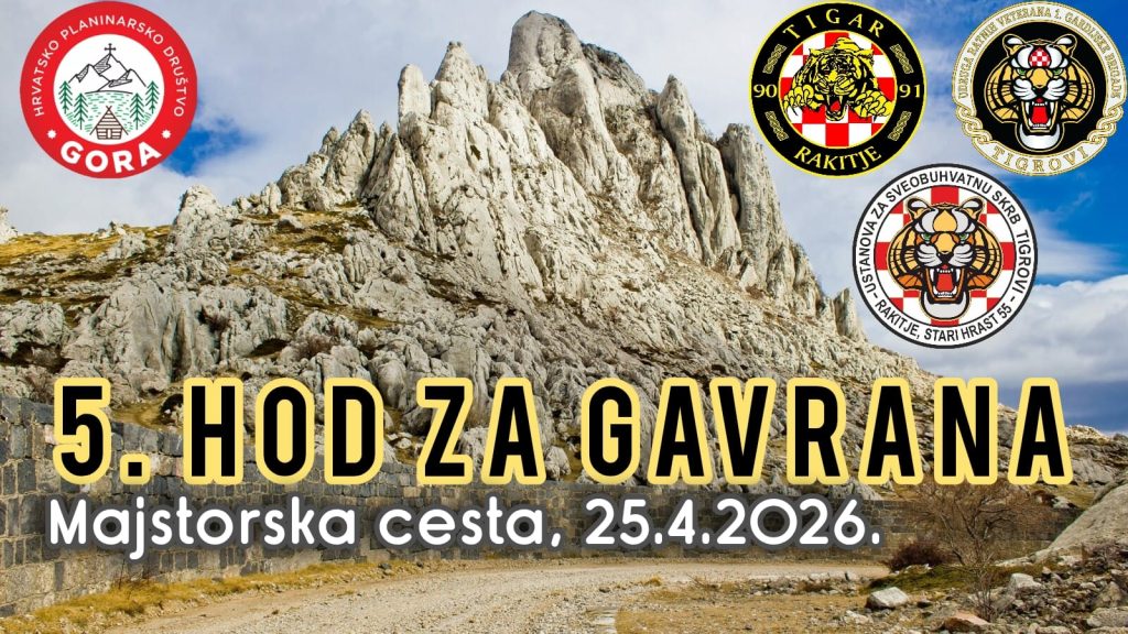 U subotu 25. travnja organizira se 5. hod za Gavrana, heroja Domovinskog rata tragično preminulog na Velebitu podno Tulovih greda 17. veljače 1994. godine. Pokrovitelj pohoda je Općina Jasenice a organizatori su HPD Gora i više udruga Prve gardijske brigade Tigrova.