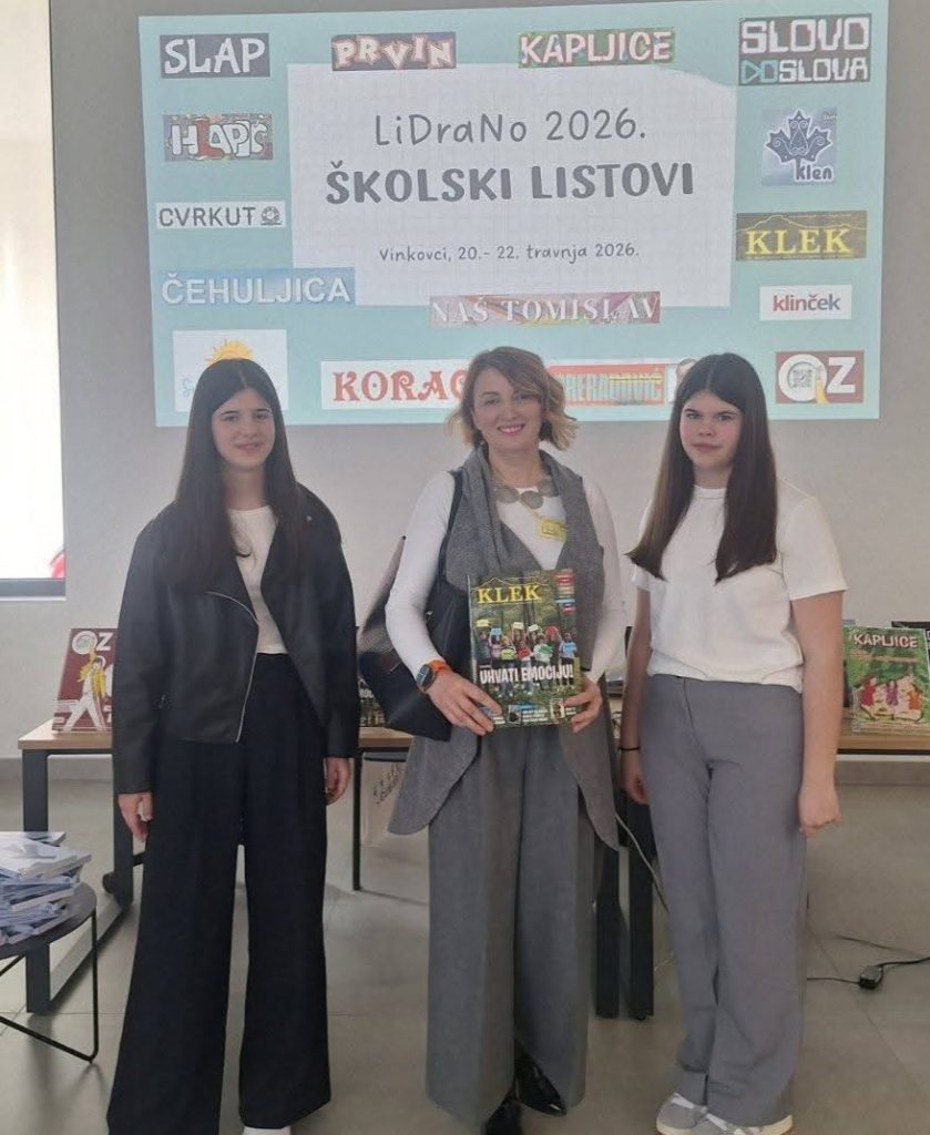 Školski list Klek je ove godine ostvario rekordni četvrti plasman na državnu završnicu Lidrana. Ove godine su urednice lista Marta Rupčić (glavna urednica) i Nikol Domitrović(pomoćna urednica), pod mentorstvom nastavnice Nikoline Salopek Mihalić, grafičke obrade nastavnice Valentine Blašković i lekture nastavnica Dejane Ogrizović.